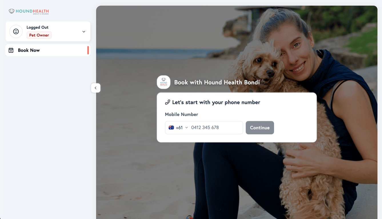 No app downloads, no passwords, no onboarding friction. Pet owners enter their phone number, receive a code, and they are in. Returning customers are recognised instantly.